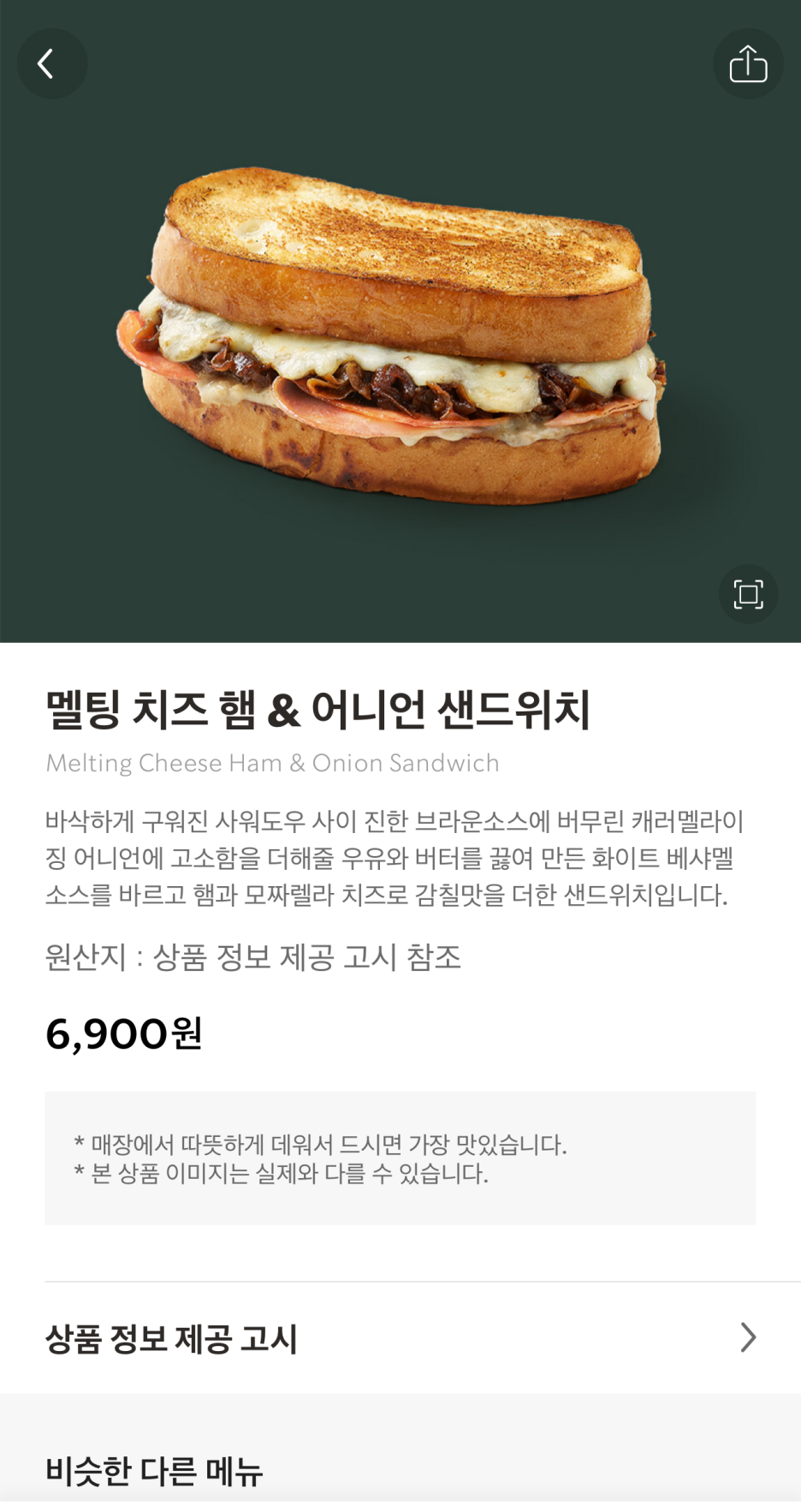 1. 멜팅 치즈 햄 & 어니언 샌드위치 슴슴하니 먹을만함